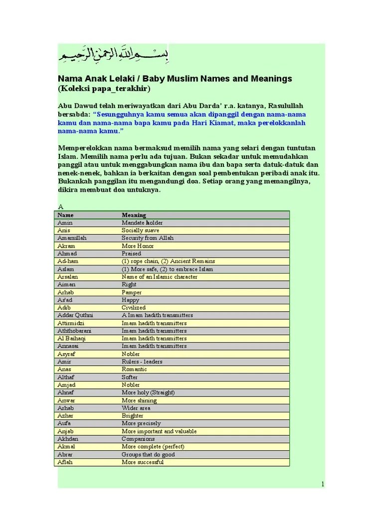 Senarai Nama Anak Lelaki Dalam Islam : Nama Dan Maksud Yang Baik Dalam Islam Ulisesrkc